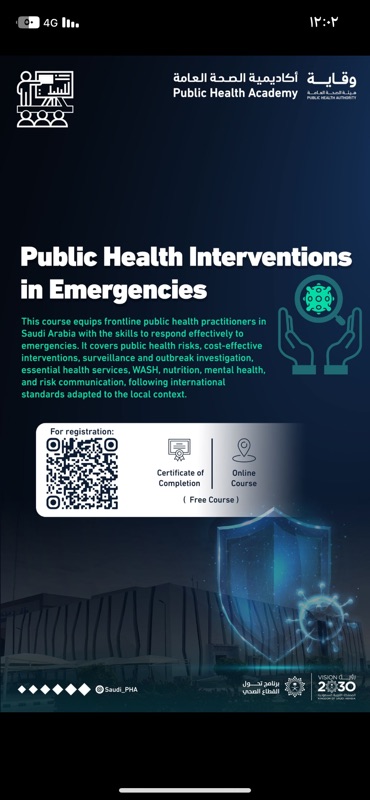 تعلن #أكاديمية_الصحة_العامة عن فتح التسجيل للدورة التدريبية بعنوان: "Public Health Interventions in Emergencies"