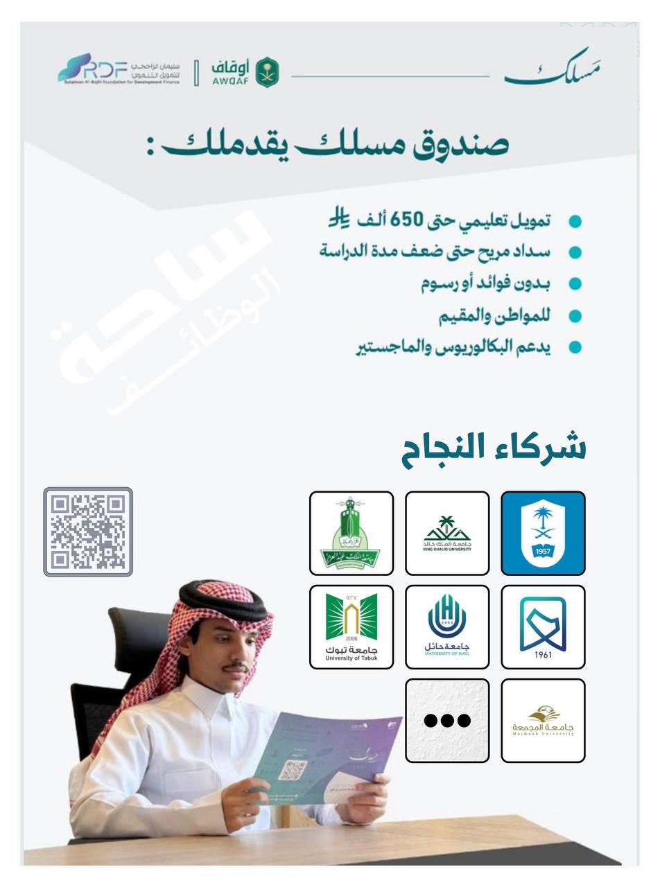 صندوق (مَسلك) يوفر قروض تعليمية دون فوائد وبسداد ميسّر حتى بعد التخرج 🎓 بالشراكة مع الهيئة العامة للأوقاف.